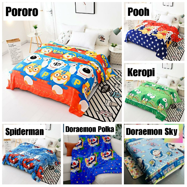 Selimut karakter motif kartun anak tersedia dalam ukuran 150×200 dan berat 0.8 kg dengan warna yang menarik dan dikemas menggunakan tas plastik resleting. Selimut bulu halus super lembut 150x200 impor termurahrp38.610: Ternyata dengan mencuci berulang ulang akan membuat kelembutan selimut menjadi hilang dan malah berubah menjadi kasar dan tajam tajam, pernah mengalami yang seperti ini? Selimut bulu ini juga hadir dalam aneka motif dan warna yang menarik. Halus,lembut dan nyaman dipakai bulu lembut;